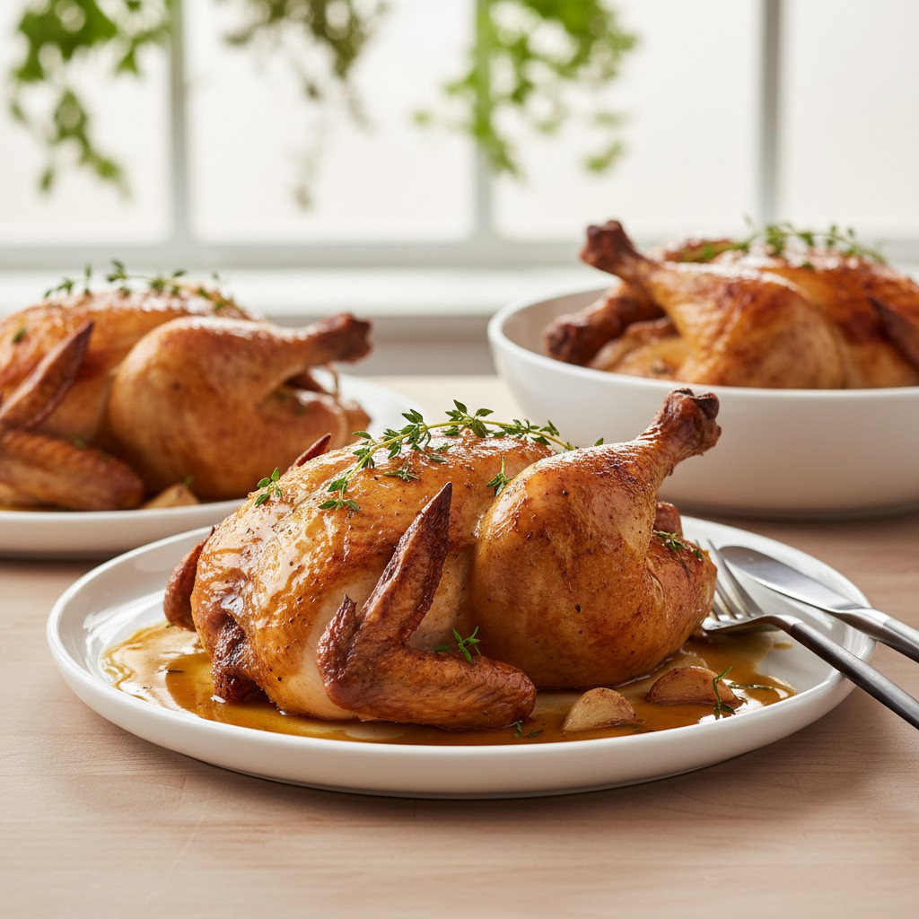 - Découpez le poulet et servez avec le jus de cuisson. Accompagnez de légumes rôtis ou d’une salade verte pour un repas équilibré.