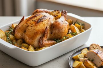 - Découpez le poulet et servez avec le jus de cuisson. Accompagnez de légumes rôtis ou d’une salade verte pour un repas équilibré.