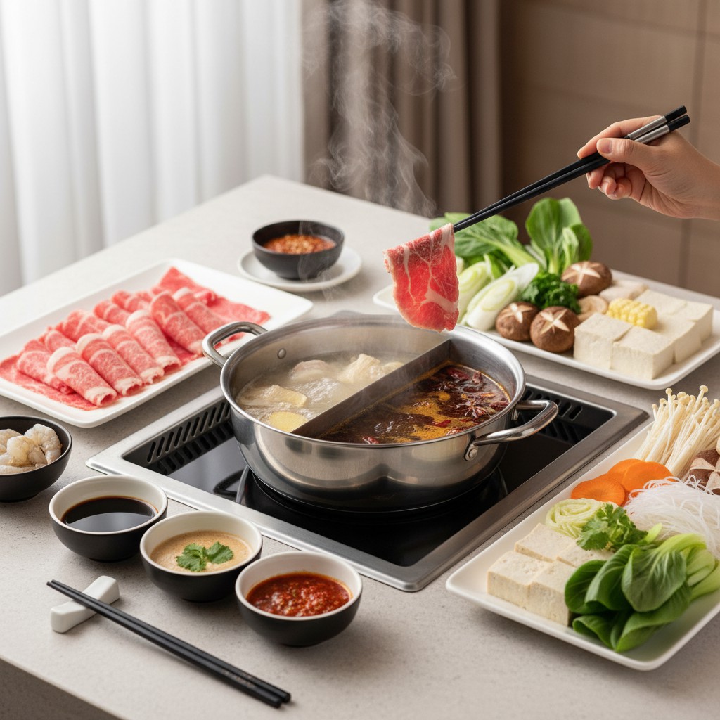 La fondue chinoise, aussi appelée « hot pot », est un plat convivial d’Asie de l’Est où chacun cuit à table de fines tranches de viande, des légumes et autres ingrédients dans un bouillon parfumé. Cette recette met en avant la fraîcheur des produits, la richesse aromatique du bouillon et la dimension interactive du repas. Traditionnellement partagée lors de fêtes ou de réunions familiales, la fondue chinoise favorise l’échange et la découverte de saveurs variées, tout en étant naturellement équilibrée : protéines maigres, légumes variés, féculents et sauces maison. Elle s’adapte facilement aux préférences alimentaires et encourage la maîtrise de la cuisson à la minute, pour une expérience gustative optimale.