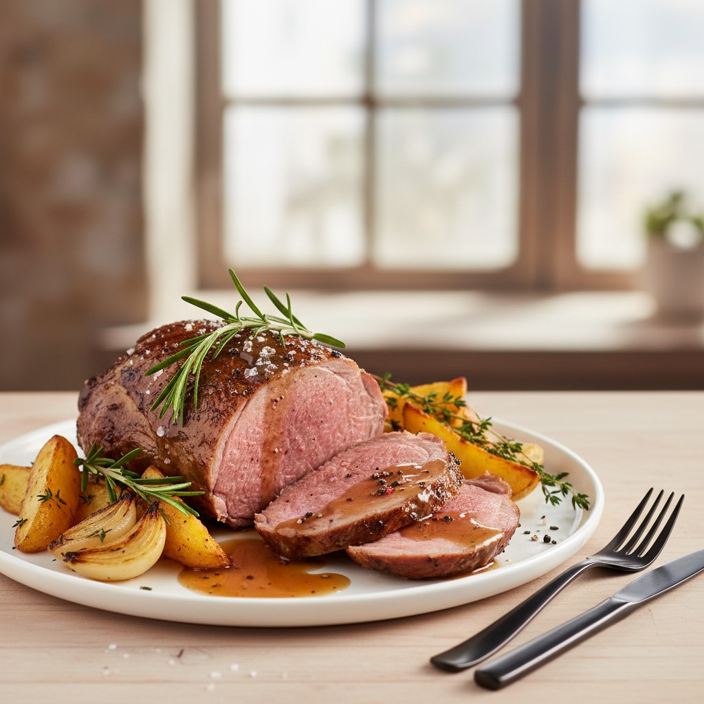 - Découpez le gigot en tranches fines, servez avec les légumes rôtis et nappez de jus de cuisson filtré. Ajustez l’assaisonnement si besoin. Accompagnez d’une salade verte ou de légumes de saison pour un repas équilibré.