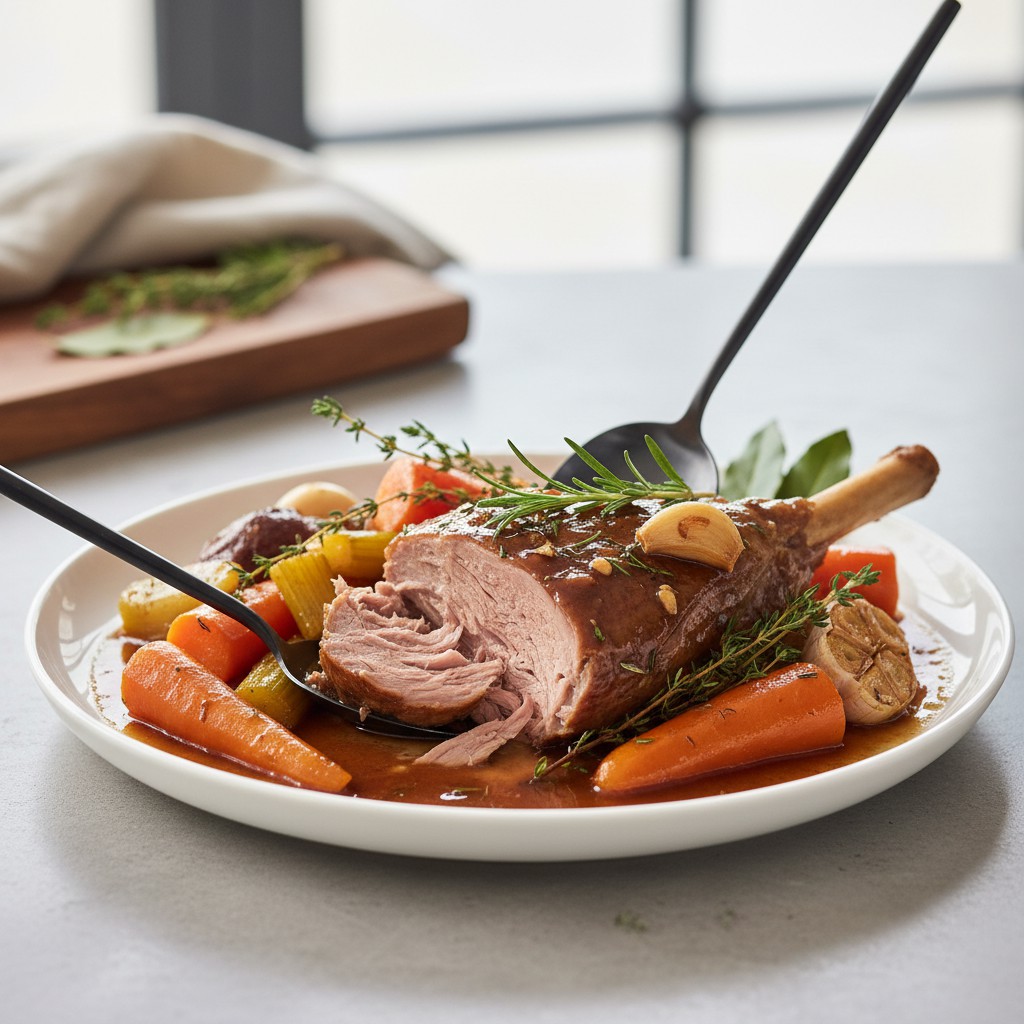 Le gigot de 7 heures, aussi appelé « gigot à la cuillère », est un plat emblématique de la cuisine française traditionnelle. Sa cuisson longue et douce transforme l’agneau en une viande fondante, qui se détache à la cuillère, tout en développant des arômes profonds et complexes. Ce plat, originaire du Sud-Ouest, était historiquement préparé pour les grandes occasions, car il sublime une pièce d’agneau modeste en un mets d’exception. Il séduit par sa générosité, sa convivialité et son équilibre nutritionnel, grâce à la présence de légumes racines et d’aromates. Accessible à tout cuisinier patient, il ne demande aucune technique complexe, mais exige rigueur et respect des temps de cuisson pour garantir une texture parfaite et des saveurs authentiques.