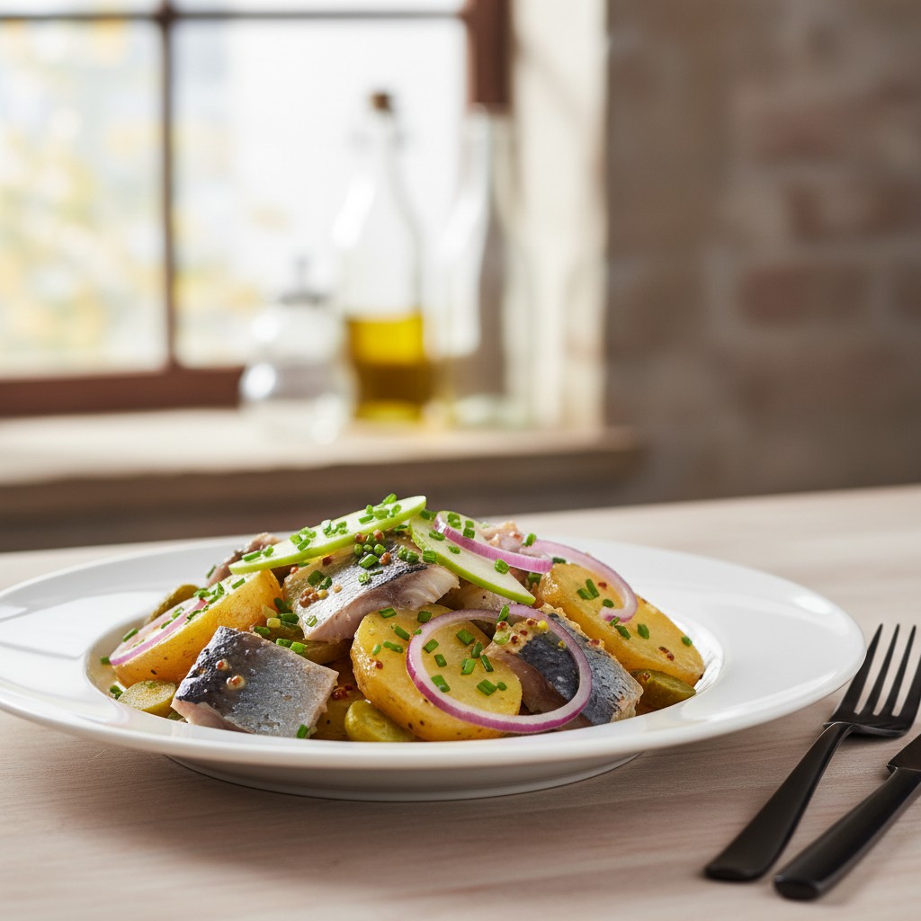 Cette recette met à l’honneur le hareng fumé, poisson emblématique des cuisines du nord de l’Europe, ici servi en salade tiède de pommes de terre. L’association du hareng, riche en oméga-3 et en saveurs fumées, avec la douceur des pommes de terre et la fraîcheur de l’oignon rouge, offre un plat complet, équilibré et authentique. Traditionnellement dégusté en entrée ou en plat léger, ce classique populaire séduit par sa simplicité, son accessibilité et sa capacité à sublimer un produit artisanal. La recette est idéale pour découvrir ou redécouvrir le hareng fumé sans le noyer sous des sauces inutiles, tout en respectant l’équilibre nutritionnel.