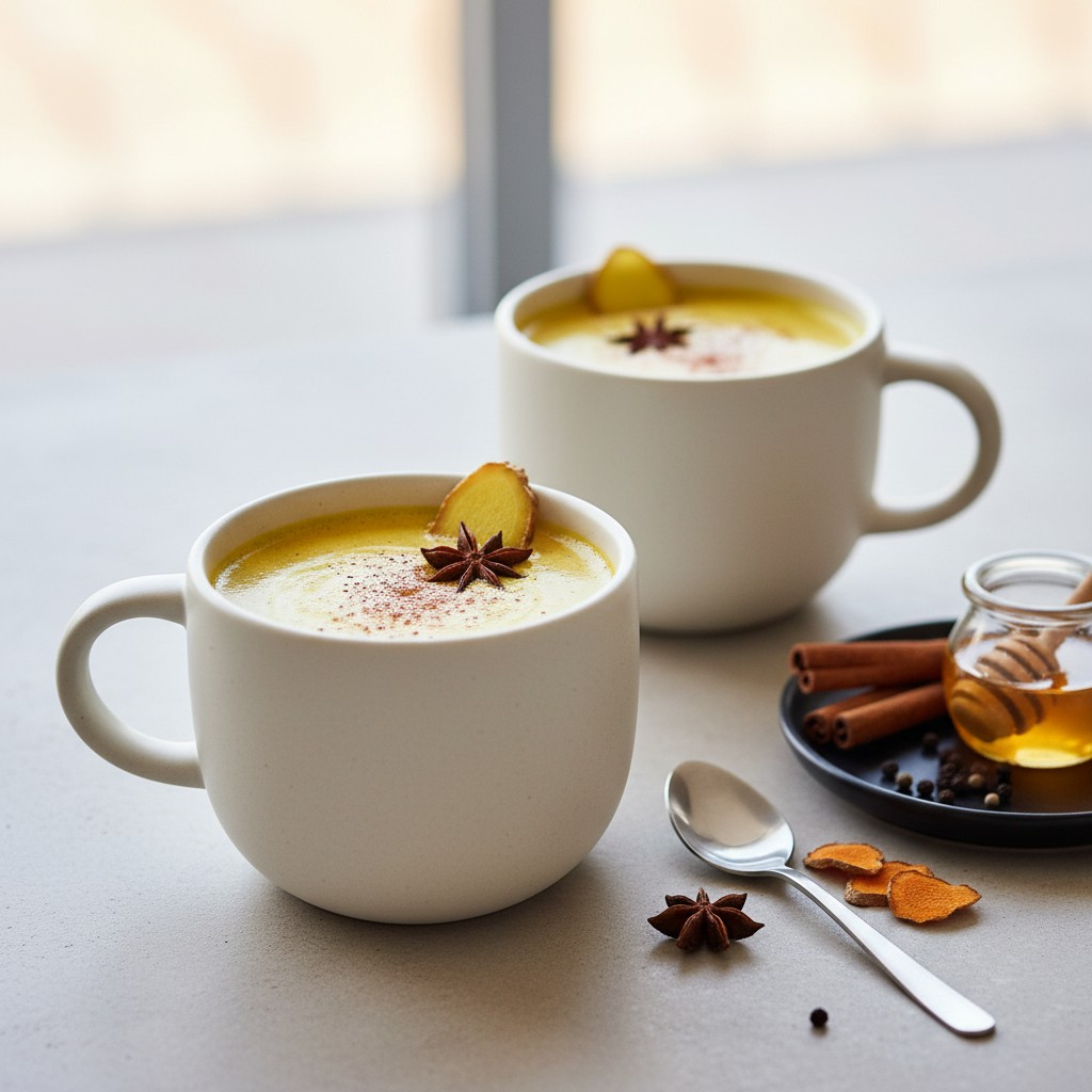 - Le curcuma forme des grumeaux : Bien fouetter dès le début, ou diluer le curcuma dans un peu de lait froid avant d’ajouter au reste.