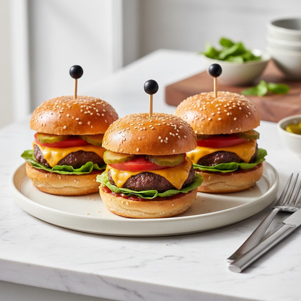 Le mini burger, aussi appelé slider, est une version miniature du burger classique, idéale pour l’apéritif, les buffets ou les repas conviviaux. Cette recette met en avant l’équilibre entre moelleux du pain, jutosité de la viande et fraîcheur des garnitures. Les mini burgers sont nés aux États-Unis dans les années 1920, popularisés par les diners et les chaînes de fast-food, mais ils se prêtent aujourd’hui à toutes les variations, du plus simple au plus raffiné. Ici, la recette privilégie la simplicité, la justesse des cuissons et l’harmonie des saveurs, tout en restant accessible à la maison. Les astuces de chef vous permettront d’obtenir des mini burgers savoureux, équilibrés et parfaitement maîtrisés, sans sacrifier la qualité nutritionnelle ni le plaisir gustatif.