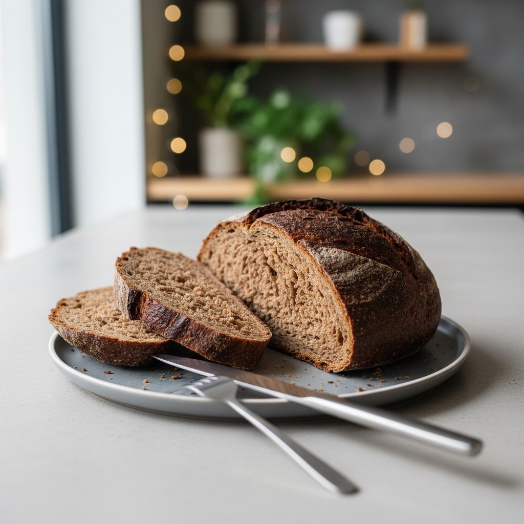 Le pain noir, aussi appelé pain de seigle ou pain paysan dans certaines régions, est un pain rustique à la mie dense et à la croûte épaisse, caractérisé par sa couleur sombre due à la forte proportion de farine de seigle. Traditionnellement consommé dans les pays nordiques, en Allemagne ou en Russie, il est apprécié pour sa richesse en fibres, son goût légèrement acidulé et sa longue conservation. Cette recette propose une version accessible à la maison, respectant l’équilibre nutritionnel (index glycémique modéré, richesse en minéraux) et la technique authentique, tout en évitant les pièges courants (pâte trop compacte, mie collante, croûte insuffisamment développée).