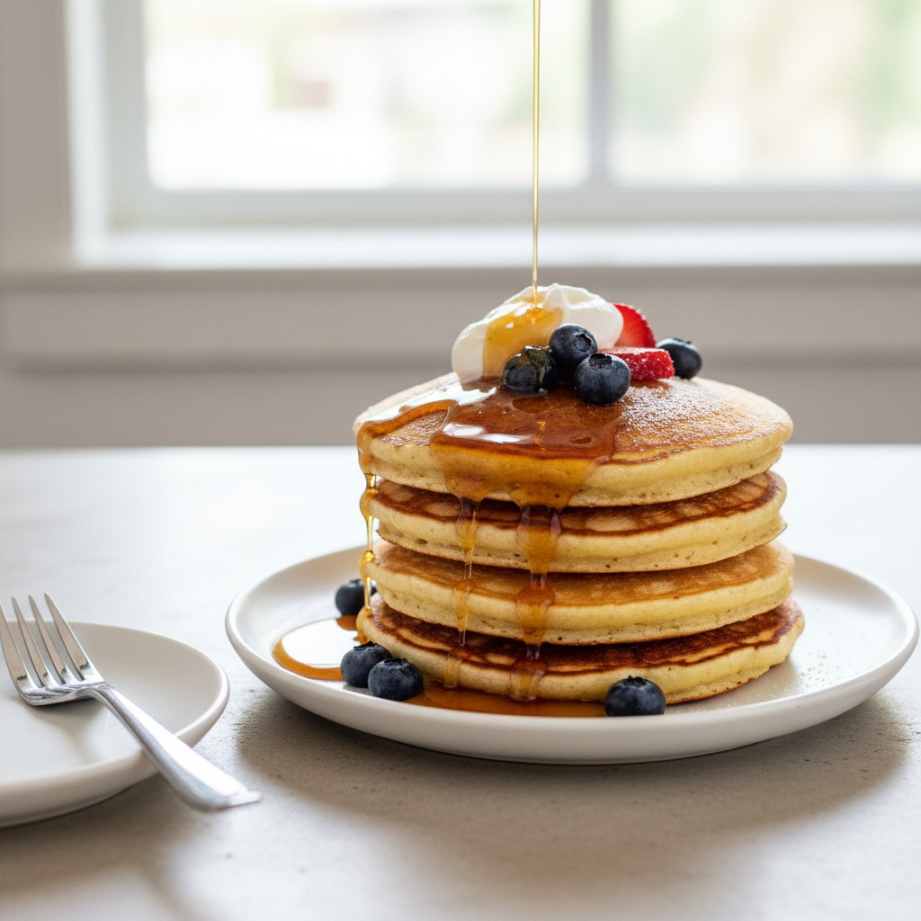 Les pancakes sont des crêpes épaisses et moelleuses originaires d’Amérique du Nord, traditionnellement servies au petit-déjeuner. Leur texture aérienne provient d’une pâte levée, souvent enrichie de lait fermenté (babeurre) ou de lait classique. Cette recette propose un équilibre entre gourmandise et nutrition, tout en restant accessible à tous. Les pancakes sont appréciés pour leur polyvalence : sucrés ou salés, ils s’adaptent à de nombreuses garnitures. Leur histoire remonte à la colonisation européenne, où chaque communauté a adapté la recette selon ses ressources. Ici, la méthode et les astuces de chef garantissent des pancakes dorés, tendres et savoureux, même pour une première réalisation.
