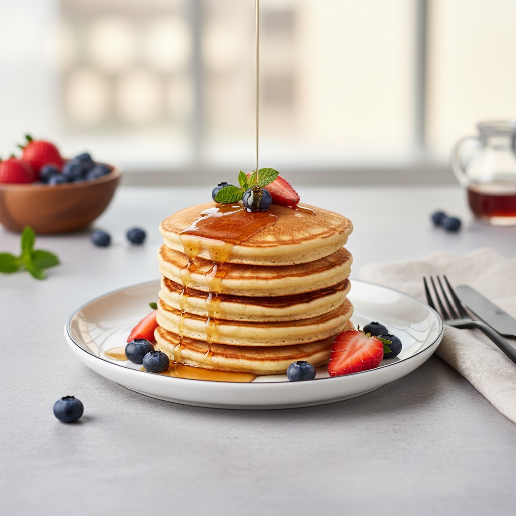 Les pancakes, emblème du petit-déjeuner nord-américain, sont appréciés pour leur moelleux et leur simplicité. Cette version adaptée au Thermomix garantit une pâte homogène, sans grumeaux, et une cuisson régulière. Idéale pour un brunch convivial ou un goûter, la recette respecte l’équilibre entre gourmandise et nutrition, tout en restant accessible. Les pancakes sont nés au XIXe siècle aux États-Unis, mais leur origine remonte à l’Antiquité. Leur succès tient à leur texture aérienne et à leur capacité à s’adapter à de nombreuses garnitures, sucrées ou salées.