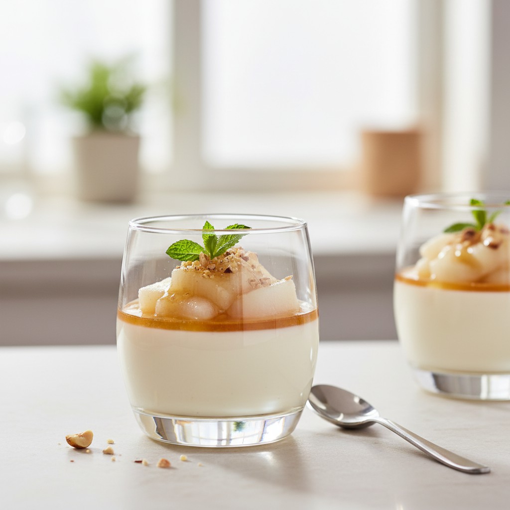 La panna cotta aux poires et miel est un dessert italien raffiné, alliant la douceur lactée de la crème infusée à la vanille à la fraîcheur des poires pochées et à la rondeur du miel. Originaire du Piémont, la panna cotta (« crème cuite ») séduit par sa texture soyeuse et son équilibre subtil entre onctuosité et légèreté. Cette version met en valeur des ingrédients simples, sans excès de sucre, pour un dessert digeste, élégant et accessible. Les astuces de chef permettent d’obtenir une panna cotta parfaitement prise, ni trop ferme ni trop liquide, et des poires fondantes sans surcuisson. Idéal pour clôturer un repas en toute saison, ce dessert conjugue authenticité, gourmandise et équilibre nutritionnel.