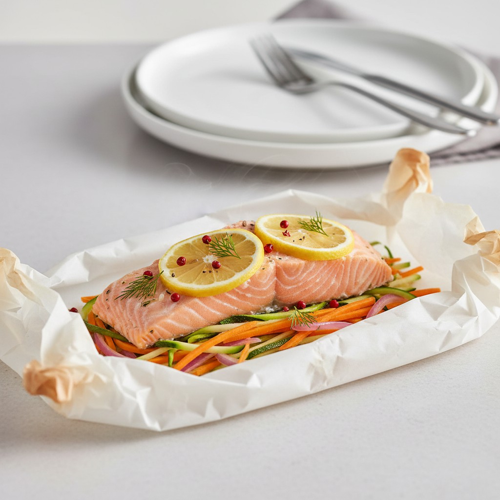 La papillote de saumon au four est une technique de cuisson douce et saine, qui préserve la tendreté du poisson tout en concentrant les arômes des herbes et légumes. Originaire de la cuisine française, la cuisson en papillote permet de cuire à la vapeur dans son propre jus, sans ajout excessif de matières grasses. Cette méthode met en valeur la fraîcheur du saumon et offre une grande liberté d’associations, tout en garantissant un plat équilibré, digeste et savoureux. Idéale pour un repas rapide, elle séduit par sa simplicité et son élégance, tout en limitant la vaisselle.