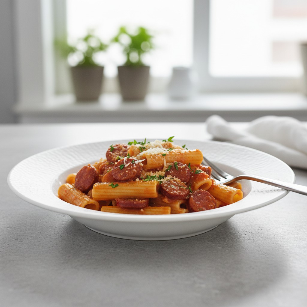 Les pâtes au chorizo sont un plat convivial et savoureux, emblématique de la cuisine familiale moderne. Cette recette marie la douceur des pâtes à la puissance aromatique du chorizo, relevée par une sauce tomate onctueuse et quelques touches méditerranéennes. Originaire d’Espagne, le chorizo apporte ici son caractère fumé et épicé, transformant un plat simple en une expérience gourmande. L’équilibre entre féculents, protéines et légumes en fait un repas complet, facile à réussir et à adapter selon vos envies. Idéal pour un dîner rapide sans sacrifier le goût ni la qualité nutritionnelle.