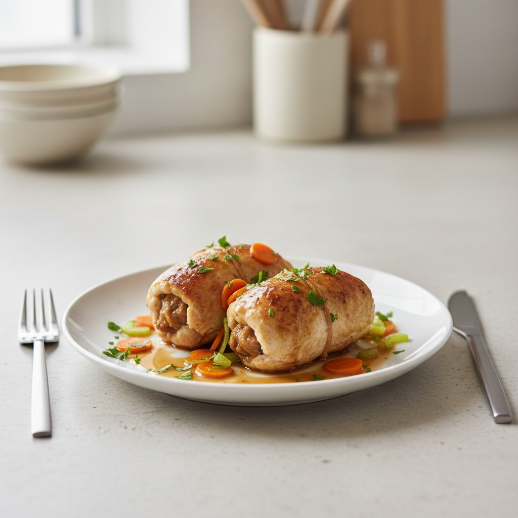 La paupiette de poulet est un classique de la cuisine française, alliant tendreté de la volaille et farce savoureuse. Cette recette, héritée des traditions bourgeoises, met en valeur la technique du roulage et du ficelage, garantissant une cuisson homogène et un plat généreux. Elle séduit par son goût réconfortant, sa présentation élégante et sa capacité à s’adapter à de nombreuses variantes (farce légère, légumes de saison). Idéale pour un repas familial ou un dîner raffiné, la paupiette de poulet offre un équilibre nutritionnel appréciable : protéines maigres, fibres et peu de matières grasses si l’on maîtrise la technique. L’essentiel réside dans la qualité de la volaille, la justesse de la farce et la maîtrise de la cuisson.