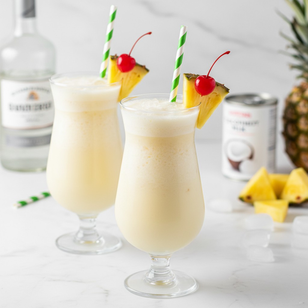 - 1. Préparez tous les ingrédients à l’avance : secouez ou mélangez le lait de coco pour qu’il soit bien homogène (évitez les grumeaux), pressez l’ananas si vous utilisez du fruit frais, et mesurez précisément chaque liquide pour garantir l’équilibre du cocktail.