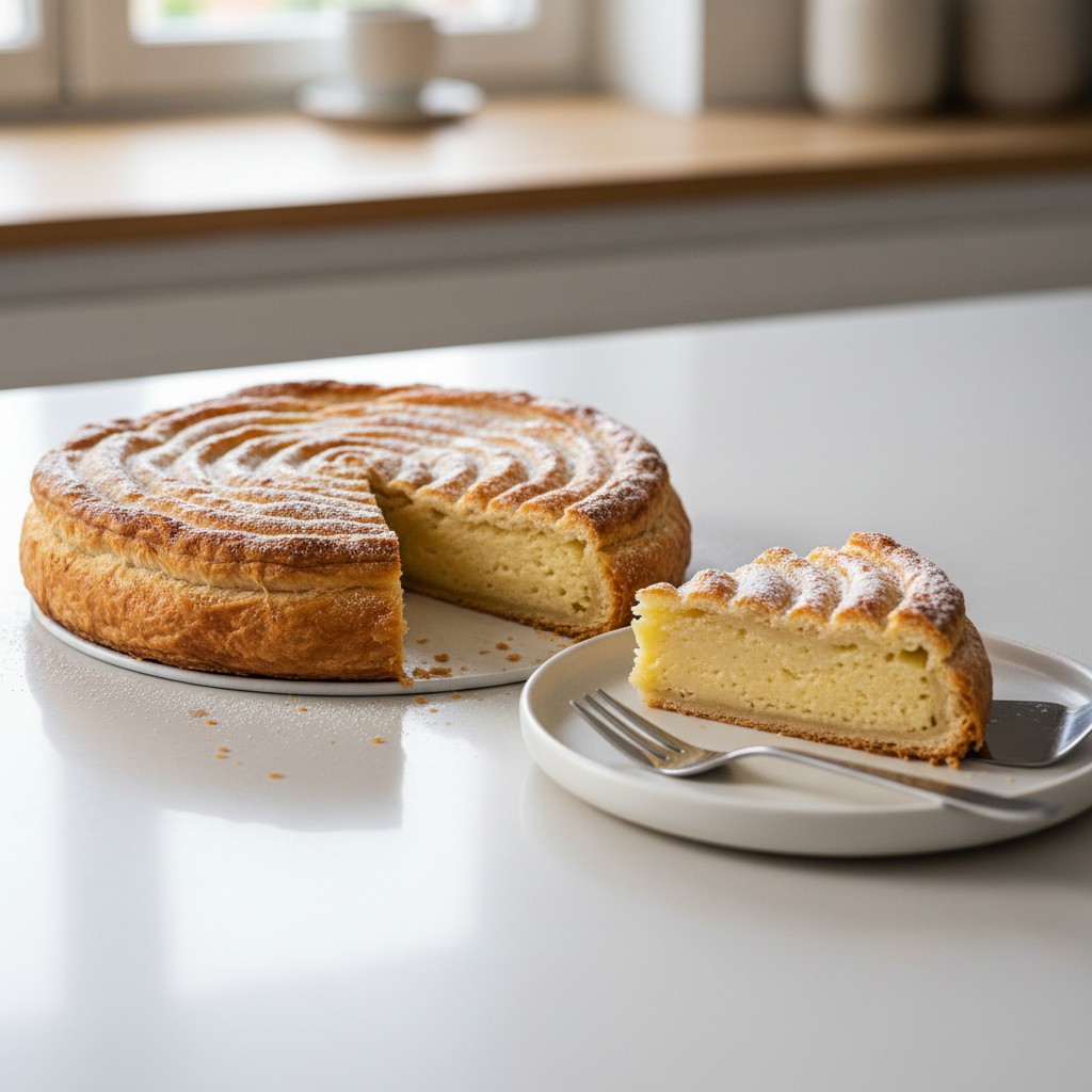 Le Pithiviers est un gâteau traditionnel français, originaire de la ville éponyme du Loiret. Il se distingue par sa pâte feuilletée dorée et croustillante, garnie d’une crème d’amande moelleuse et parfumée. Ce dessert, souvent confondu avec la galette des rois, se différencie par l’absence de fève et une garniture plus riche en amandes. Le Pithiviers séduit par son équilibre entre croustillant et fondant, sa simplicité d’ingrédients et la noblesse de ses saveurs. Idéal pour les amateurs de pâtisserie maison qui souhaitent s’initier à la maîtrise du feuilletage et de la crème d’amande, tout en profitant d’une recette authentique et accessible.