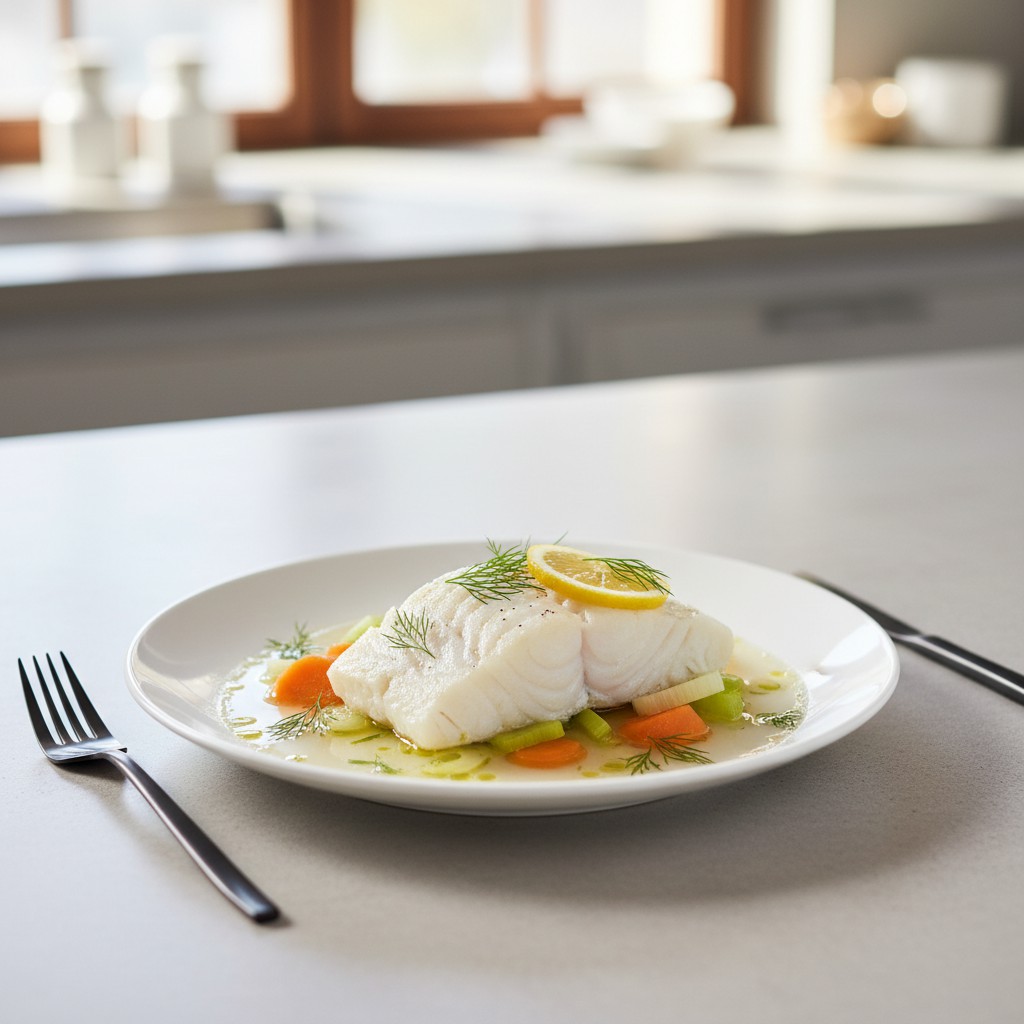 Le poisson au court bouillon est une préparation classique de la cuisine française, idéale pour préserver la délicatesse et la saveur du poisson tout en garantissant une cuisson saine et digeste. Cette technique, héritée de la tradition bourgeoise, consiste à pocher le poisson dans un bouillon aromatique, permettant d’obtenir une chair moelleuse, parfumée et sans ajout de matières grasses superflues. Accessible et rapide, elle met en valeur la fraîcheur du poisson et s’adapte à de nombreuses espèces (cabillaud, lieu, saumon, truite…). Le court bouillon, composé d’eau, de légumes, d’aromates et d’un trait de vinaigre ou de vin blanc, apporte une touche subtile sans masquer le goût du poisson. Cette méthode est idéale pour un repas léger, équilibré et savoureux, tout en limitant la charge mentale grâce à sa simplicité d’exécution.