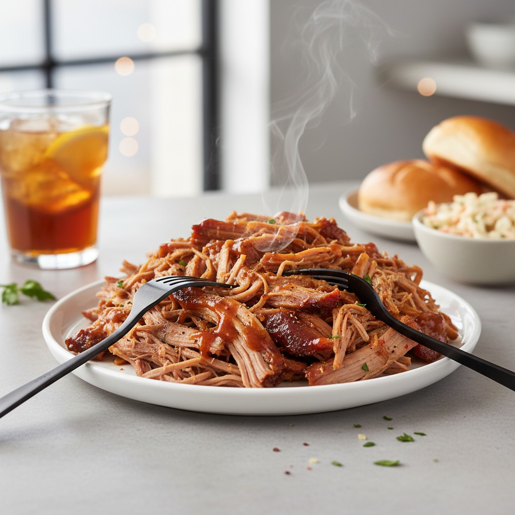 - Servir chaud, nature ou nappé de sauce barbecue, dans des pains à burger, tortillas, ou accompagné de légumes croquants. Pour une version plus légère, privilégier une garniture de salade et limiter la sauce.