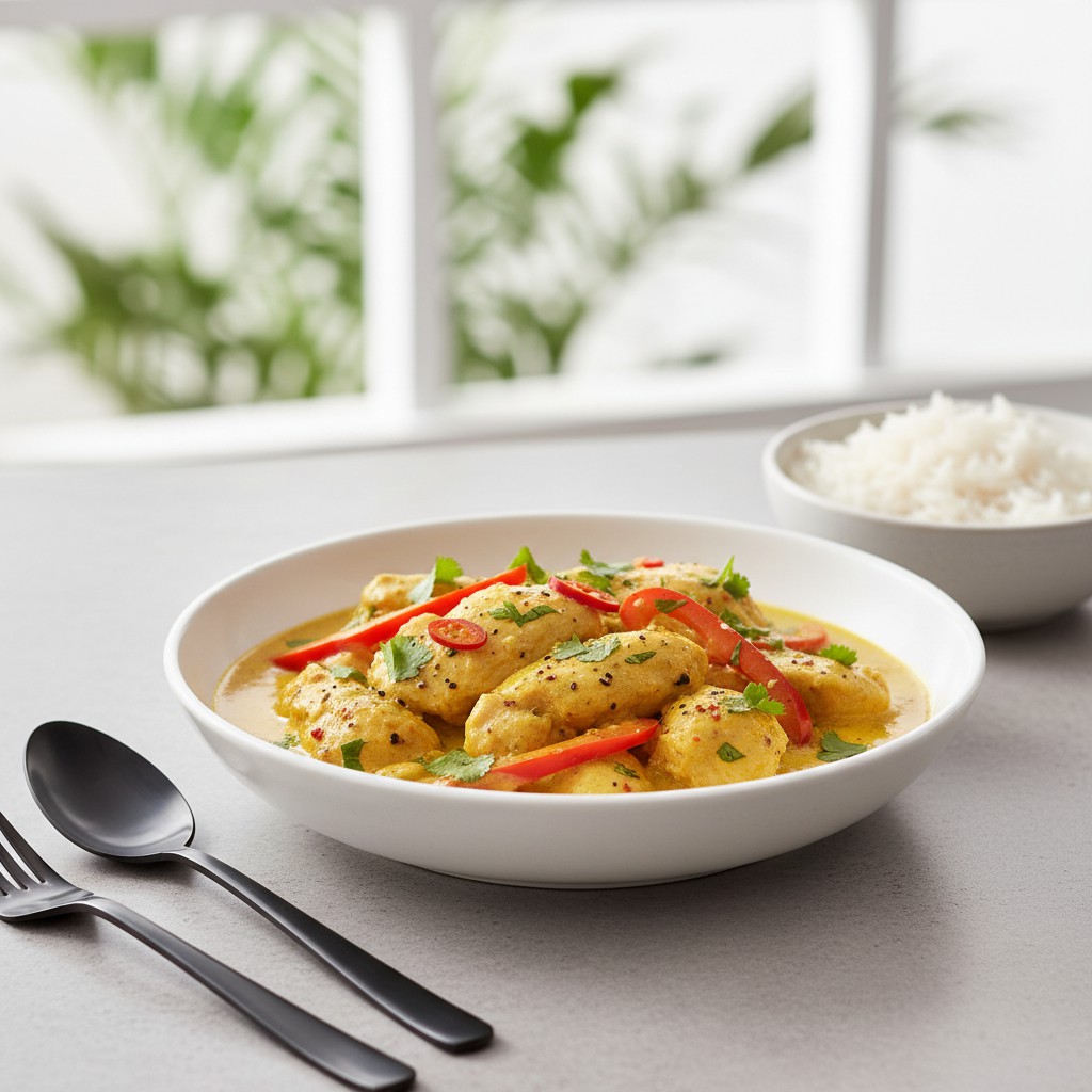 - Servez chaud, parsemé de coriandre fraîche, accompagné de riz basmati ou thaï. Conseil nutrition : ajoutez des légumes verts (haricots, brocolis) pour un plat plus équilibré.