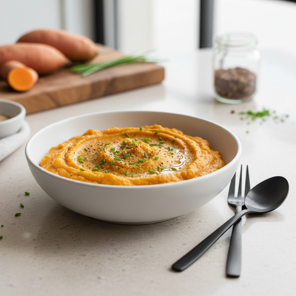 La purée de patate douce est une préparation onctueuse et colorée, appréciée pour sa douceur naturelle et sa texture veloutée. Originaire d’Amérique du Sud, la patate douce s’est imposée dans de nombreuses cuisines du monde, notamment pour ses qualités nutritionnelles (riche en fibres, bêta-carotène et vitamines) et sa capacité à accompagner aussi bien des plats salés que sucrés. Cette recette met en avant la simplicité et l’équilibre : peu d’ingrédients, une technique accessible, et des astuces pour obtenir une purée savoureuse, digeste et parfaitement lisse. Idéale pour varier des purées classiques, elle séduit petits et grands, et s’adapte à de nombreux régimes alimentaires.