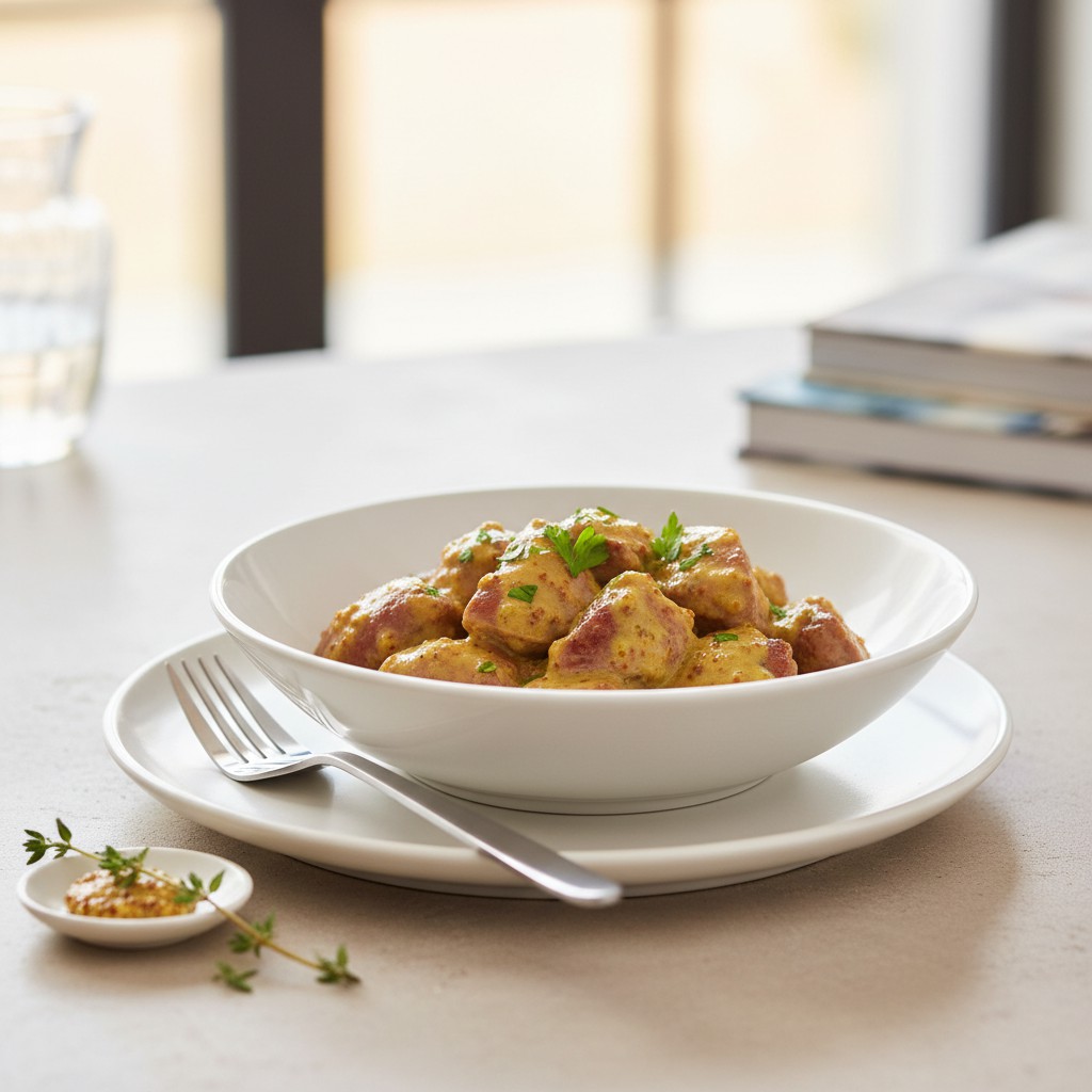 - Sauce trop liquide : Réduction insuffisante. Solution : Laisser réduire le vin blanc avant d’ajouter la crème et la moutarde.