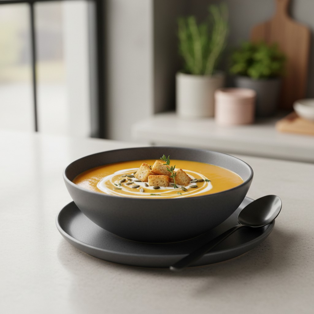 - Servez bien chaud, éventuellement agrémenté d’un filet de crème, de graines de courge ou de croûtons maison pour le contraste de textures. Pour une version plus légère, optez pour un yaourt nature ou une crème végétale.