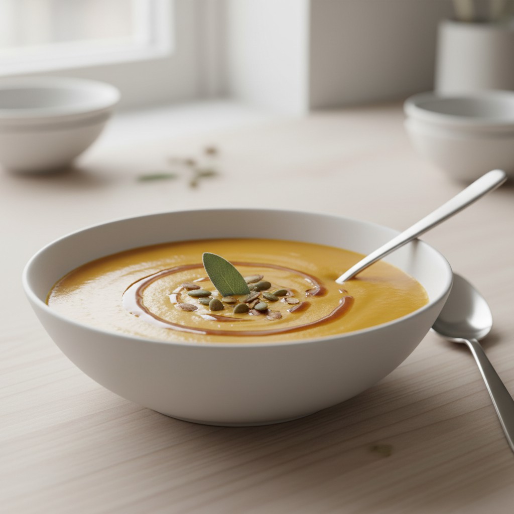 - Servez bien chaud, éventuellement agrémenté de graines de courge grillées, d’un filet d’huile de noisette ou d’un peu de crème (optionnel, pour plus d’onctuosité).