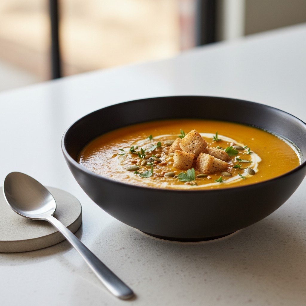 - Optionnel : graines de courge, croûtons ou herbes fraîches pour le service