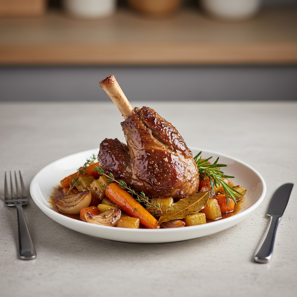 La souris d’agneau au four est un plat emblématique de la cuisine méditerranéenne, apprécié pour sa chair fondante et savoureuse. Cette recette met en valeur la cuisson lente, qui permet à la viande de s’imprégner des arômes d’herbes et d’épices tout en restant juteuse. Traditionnellement servie lors de repas conviviaux ou de fêtes familiales, elle séduit par son authenticité, sa simplicité d’exécution et son équilibre nutritionnel (protéines de qualité, légumes rôtis, matières grasses maîtrisées). L’accompagnement de légumes racines rôtis apporte fibres et vitamines, pour un plat complet et rassasiant. Cette version privilégie la justesse des gestes et la compréhension des réactions de cuisson pour garantir un résultat digne d’un chef, même à la maison.