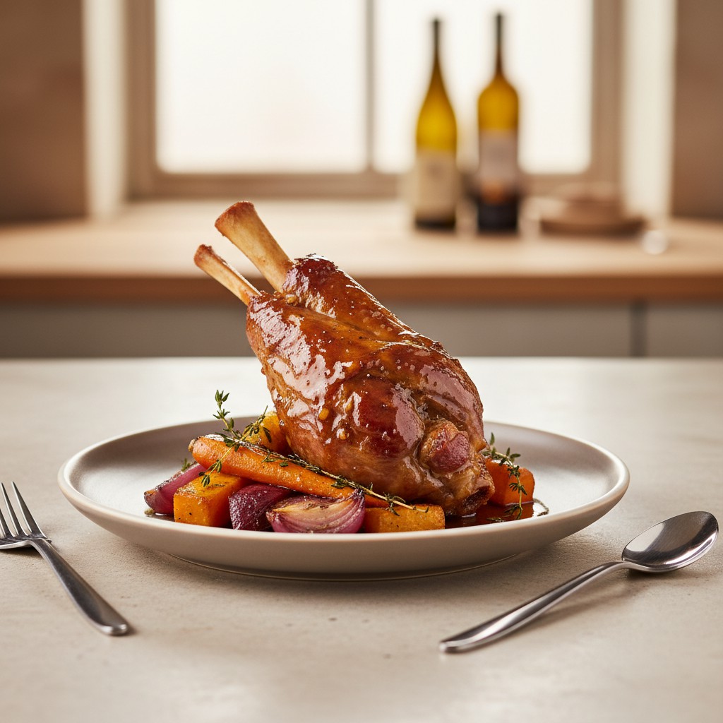 - Vérifiez la cuisson : la viande doit se détacher facilement de l’os. Rectifiez l’assaisonnement si besoin. Servez chaud, nappé de jus réduit, accompagné de légumes racines rôtis ou d’une purée maison.