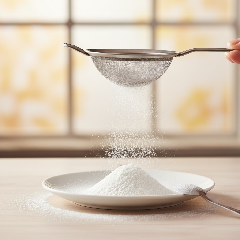 - Passez le sucre glace obtenu au tamis ou à la passoire fine pour éliminer les éventuels grains résiduels. Cette étape est essentielle pour garantir une texture parfaitement lisse, surtout pour les glaçages ou la décoration.