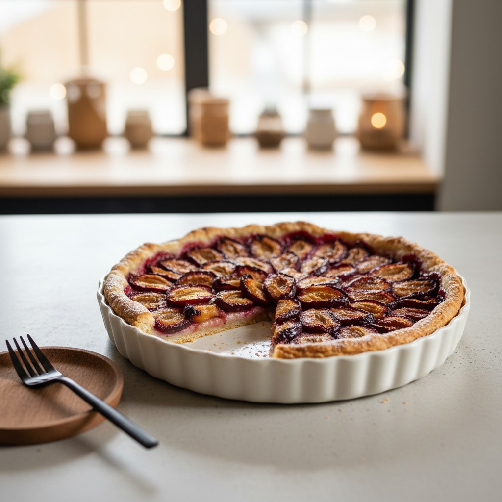 La tarte aux quetsches est une spécialité traditionnelle de l’Est de la France, notamment d’Alsace et de Lorraine, où la quetsche, prune violette à la chair acidulée, est reine à la fin de l’été. Cette tarte met en valeur la saveur fruitée et légèrement acidulée des quetsches, sublimée par une pâte croustillante et une fine couche de poudre d’amande qui absorbe le jus des fruits. Accessible et authentique, elle offre un équilibre parfait entre douceur, acidité et texture. Idéale pour un dessert familial ou un goûter, elle se distingue par sa simplicité et son respect du produit. L’astuce du chef : bien égoutter les fruits et saupoudrer d’un peu de semoule ou d’amande pour éviter une pâte détrempée.