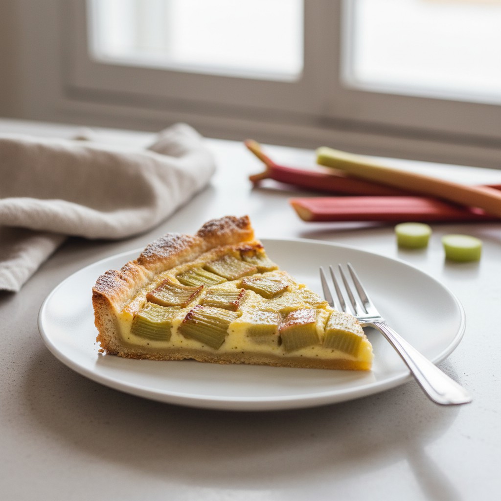 - La garniture ne prend pas : Respecter la proportion œufs/crème et ne pas surcharger en rhubarbe. Cuire suffisamment longtemps pour que l’appareil soit ferme.