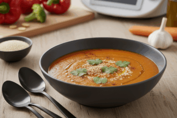 Découvrez une recette simple et savoureuse de potage de lentilles corail au Thermomix. Ce velouté est parfait pour les soirées fraîches, riche en protéines végétales et en saveurs exotiques grâce à une touche d’épices. Une recette rapide et équilibrée qui plaira à toute la famille. Informations sur la recette Temps Lire la suite…