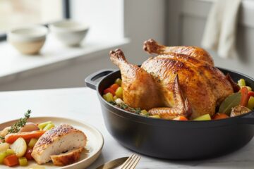 Le poulet au four est un classique de la cuisine familiale française, apprécié pour sa simplicité, sa convivialité et sa capacité à sublimer une volaille entière avec peu d’ingrédients. Cette recette met en avant la cuisson lente et maîtrisée, qui garantit une chair juteuse et une peau dorée et croustillante. Lire la suite